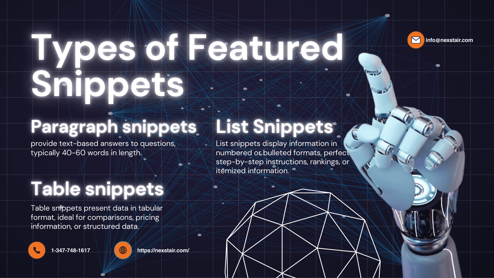 Want to transform your content strategy and capture more featured snippets? Nexstair Technologies provides data-driven content optimization services that align with Google’s latest algorithm updates. Our team of SEO specialists will audit your existing content and create a roadmap for snippet domination.
